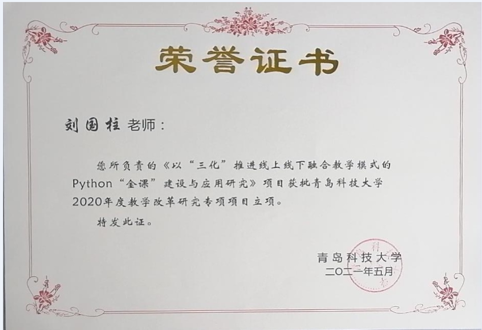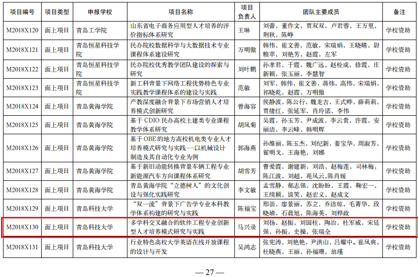 27、青岛科技大学校教改项目--以“三化”推进线上线下融合教学模式的Python“金课”建设与应用研究