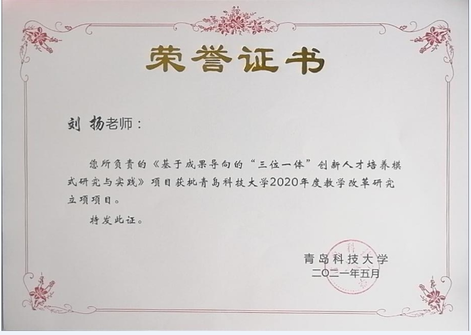 28、青岛科技大学校教改项目--基于成果导向的“三位一体”创新人才培养模式研究与实践