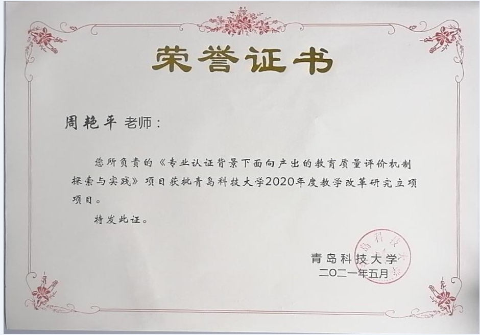 26、青岛科技大学校教改项目--专业认证背景下面向产出的教育质量评价机制探索与实践