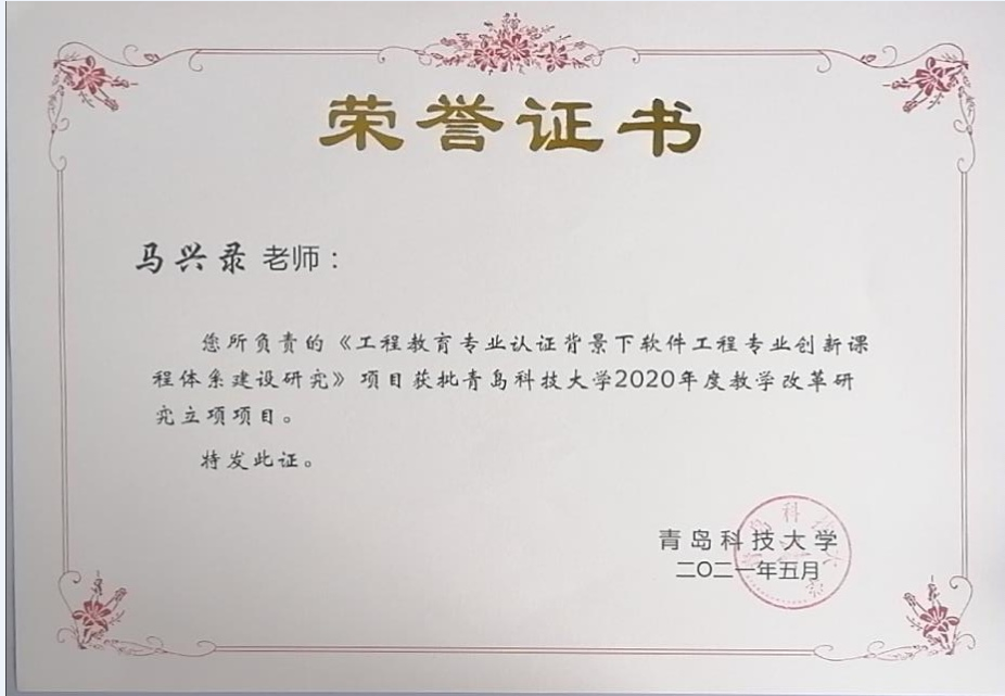 25、青岛科技大学校教改项目--工程教育专业认证背景下软件工程专业创新课程体系建设研究