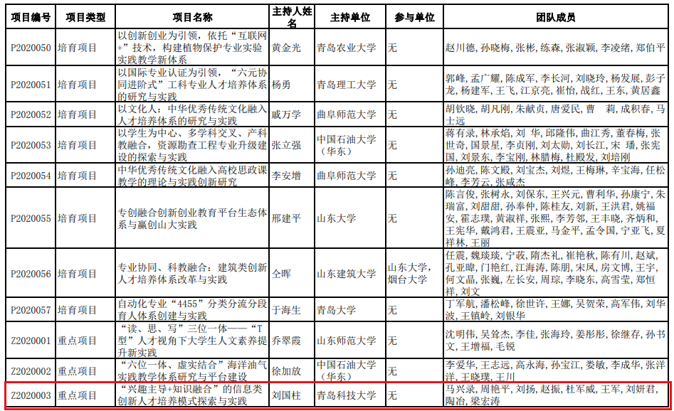 20、青岛科技大学校教改项目--多学科交叉融合的软件工程专业创新型人才培养模式研究与实践