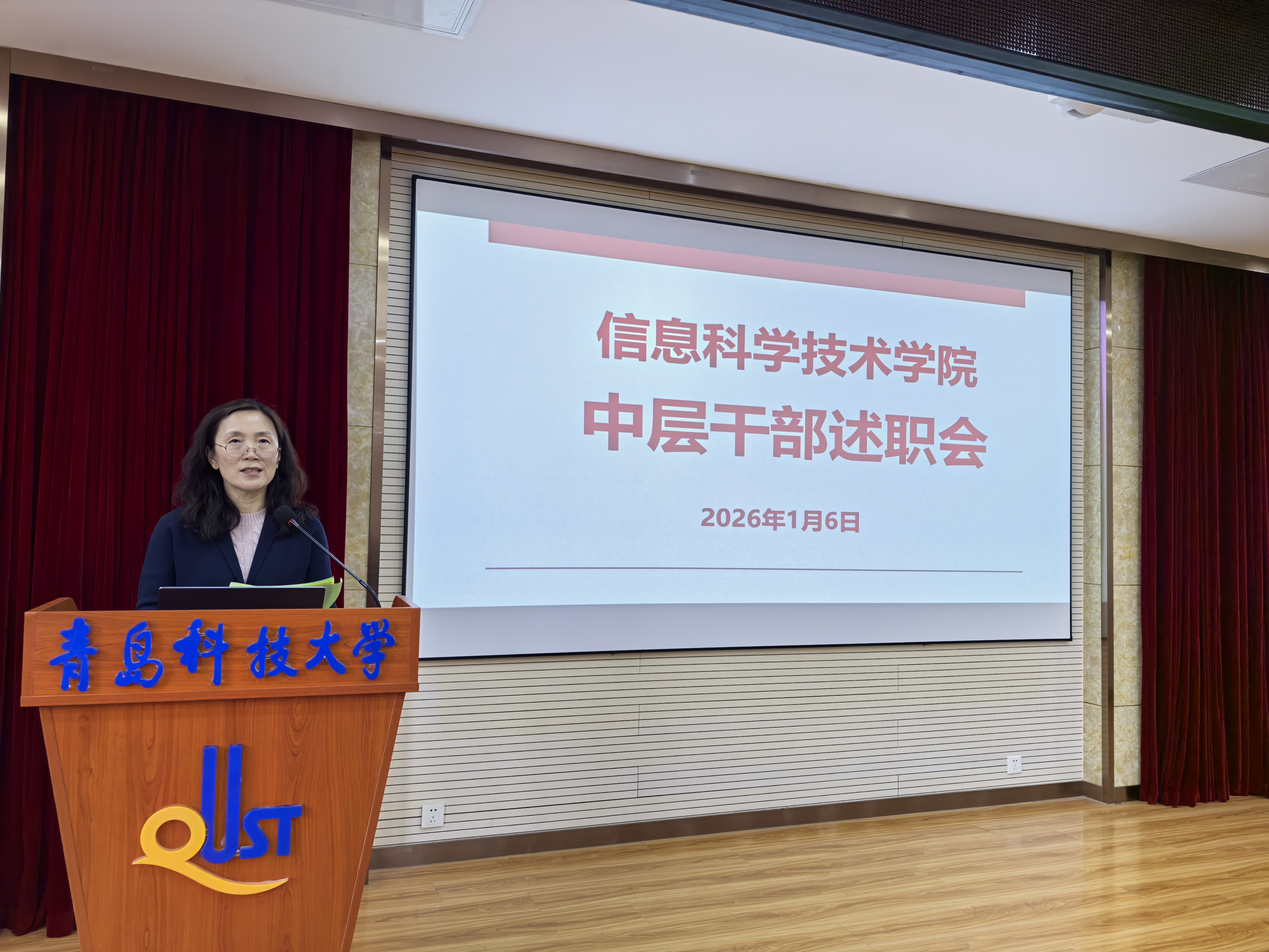 院长王景景代表学院行政进行述职,她指出,全院上下团结奋进,开拓进取,扎实工作,学院高质量发展取得实质性进展,在学科建设、学位点申报、教育教学、科学研究、教师队伍、社会服务、社会影响等方面取得了显著成绩。她还深刻分析了当前学院发展面临的机遇与挑战,并对2026年的重点工作进行了初步规划和部署,为学院新一年的发展指明了方向。